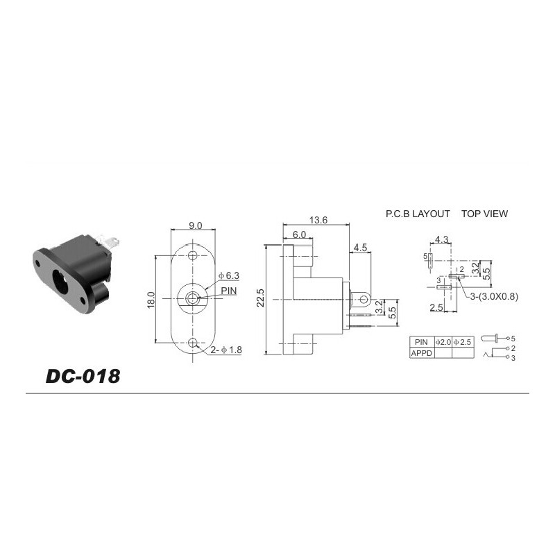 Diametre de montage: 7.5mm