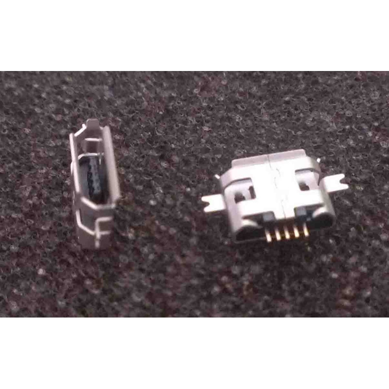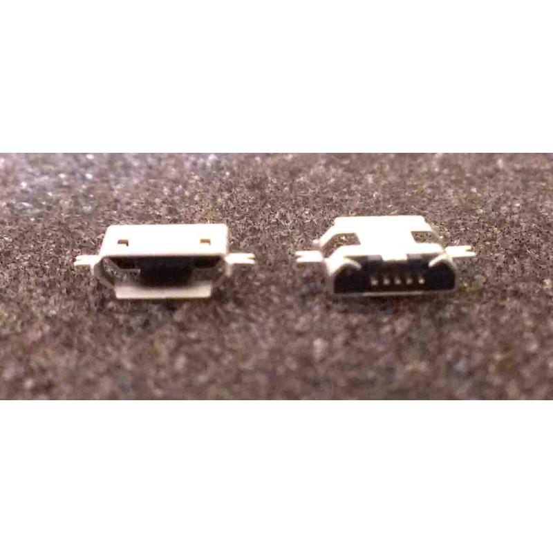 Connecteur micro USB B femelle a souder (fixation 2 points 90°centrale écartées)(5 pattes courtes pour l'USB)