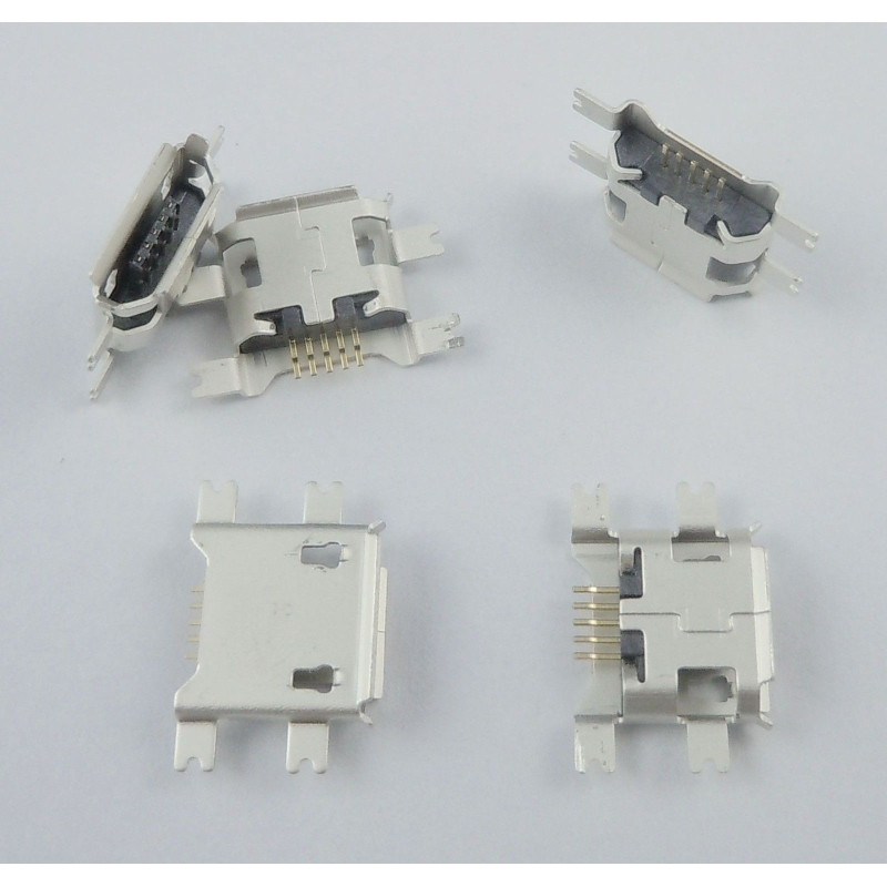 Connecteur micro USB B femelle a souder (fixation 4 points ecartés centrée sur le connecteur) (5 points pour l'USB pattes longues)