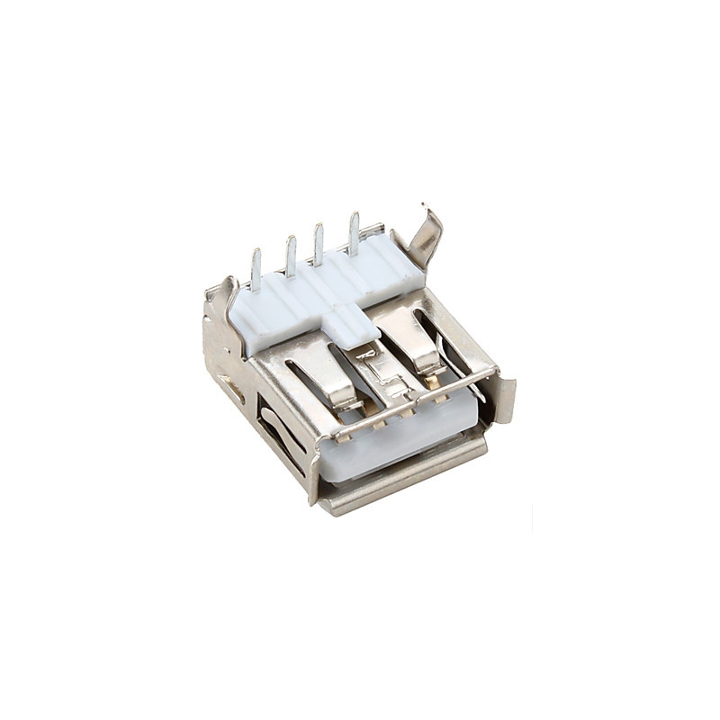 Connecteur USB A femelle , Double connection 8 broches pour USB et 4 Pattes pour fixation 90° base blanche